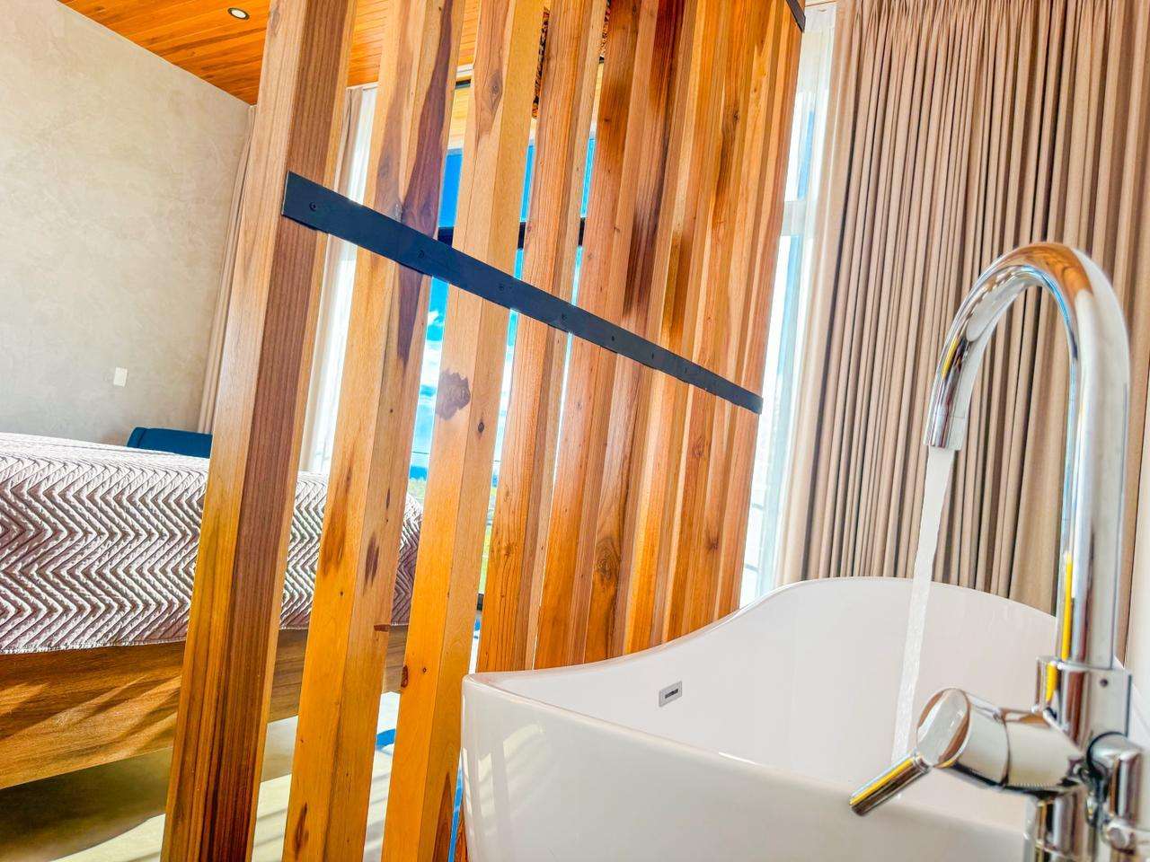The open-plan living area is designed for both comfort and style, featuring a chic living room and a sophisticated dining area that flows effortlessly into the top-of-the-line kitchen. The dining table and great room further enhance your experience, allowing you to dine and unwind while immersing yourself in the breathtaking ocean vistas.